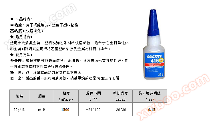 当前产品汉高乐泰LOCTITE 416 瞬干胶 20g